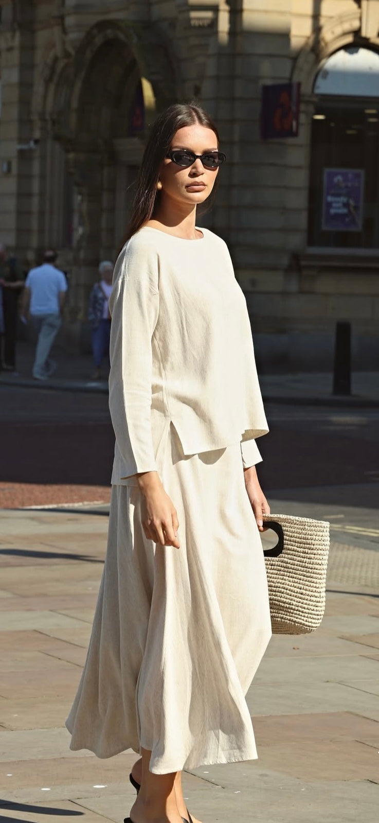 Effortless and elegant, the Amalfi Co-Ord Set is crafted from 100% pure linen for breathable comfort. Featuring a relaxed long-sleeve top with side slits and a flowing A-line maxi skirt, this minimalist set is perfect for warm-weather sophistication.