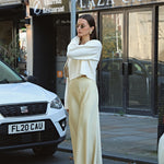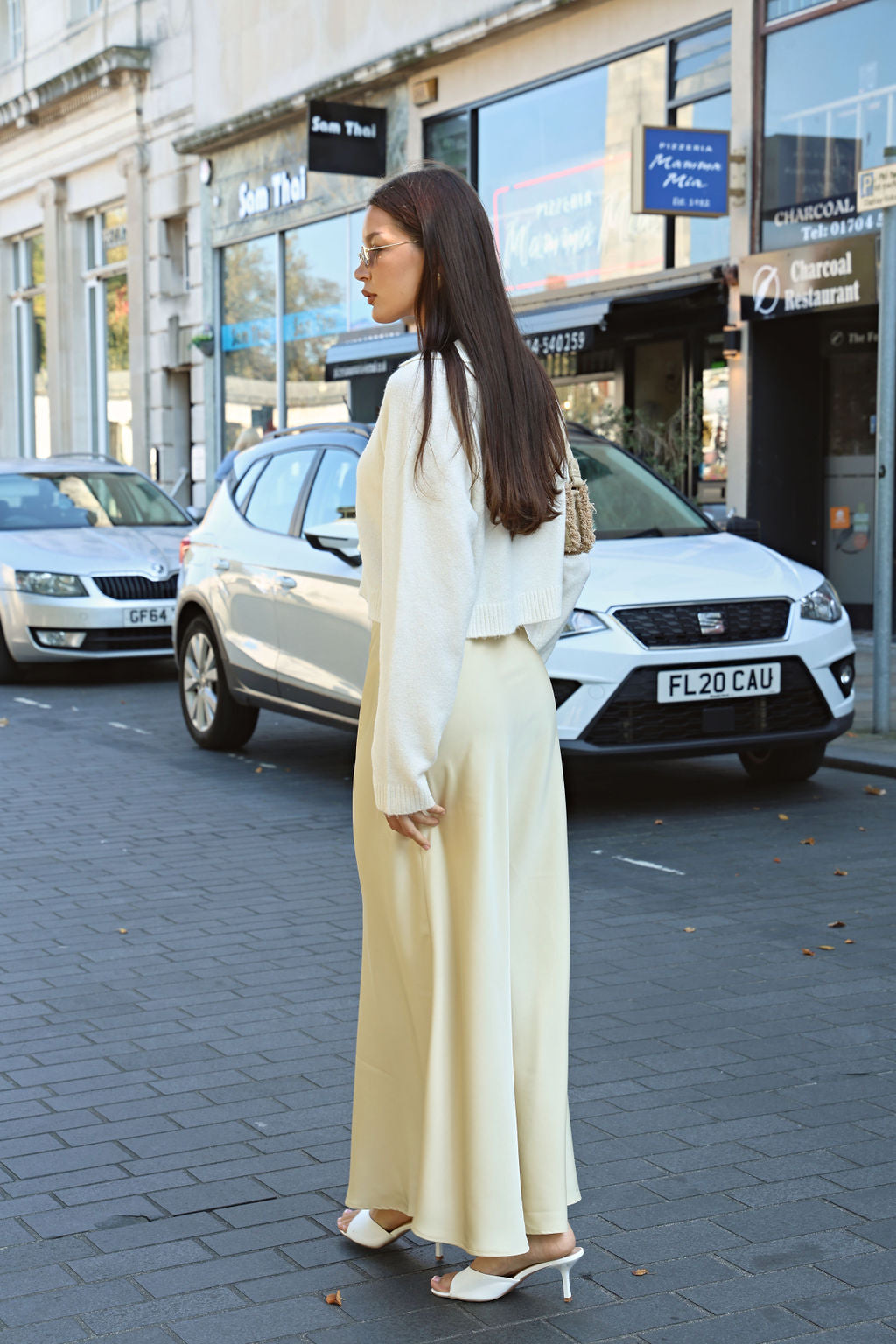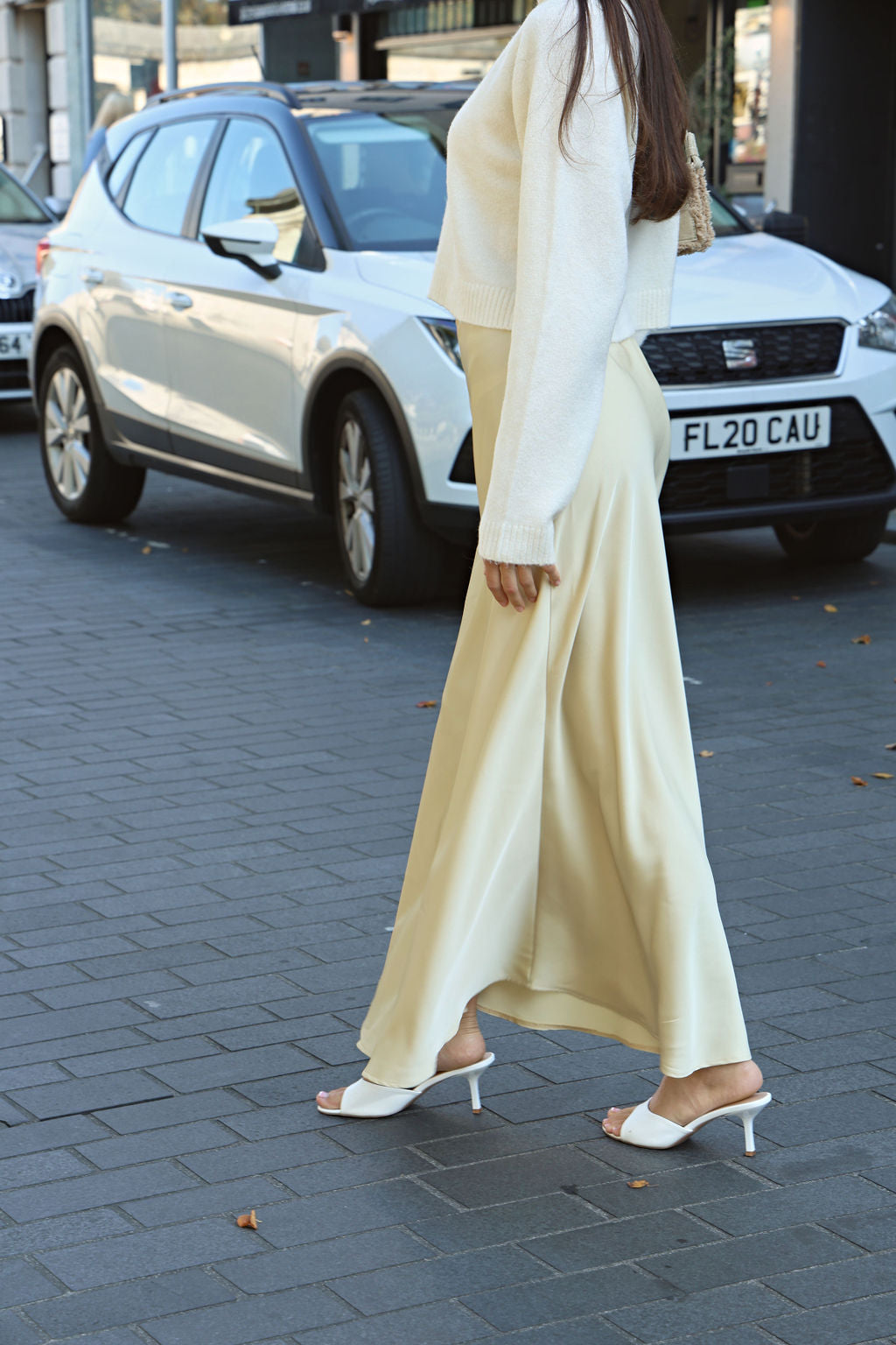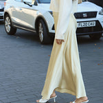 “Elevate your style with this sleek satin skirt. Its smooth, glossy finish adds a touch of elegance, perfect for day-to-night looks. Pair it with your favorite top and heels for effortless chic!”