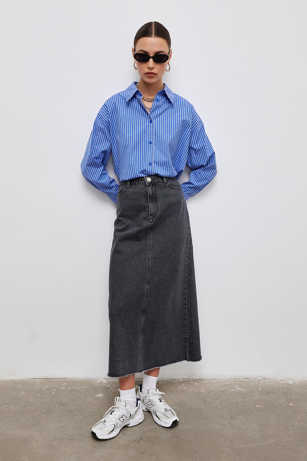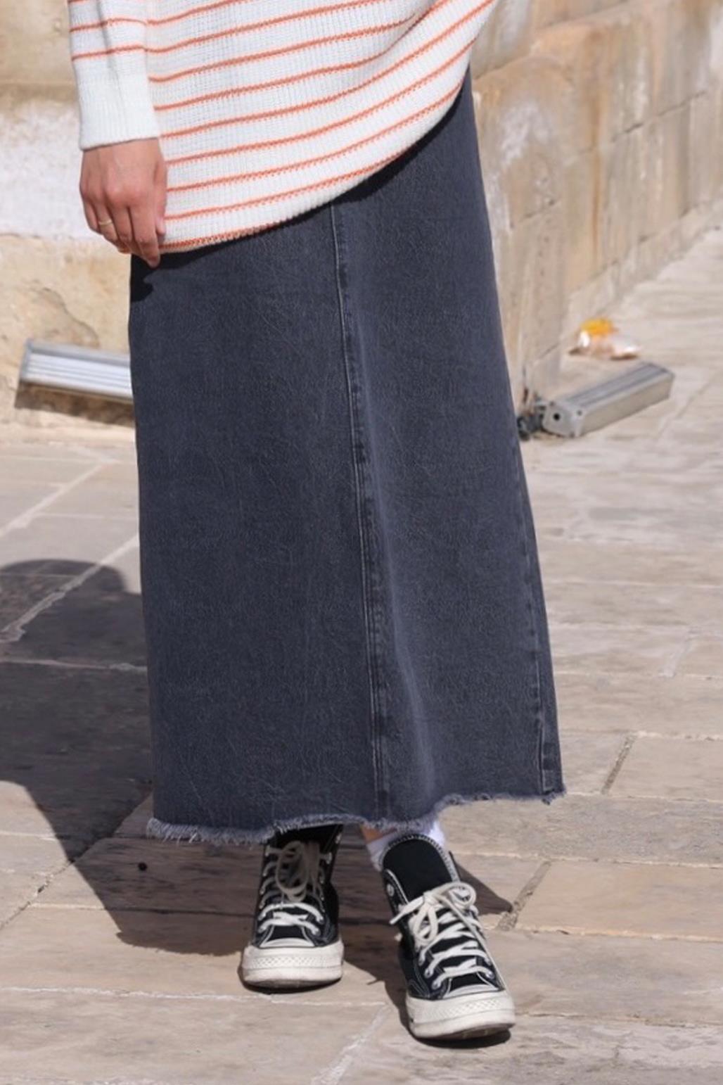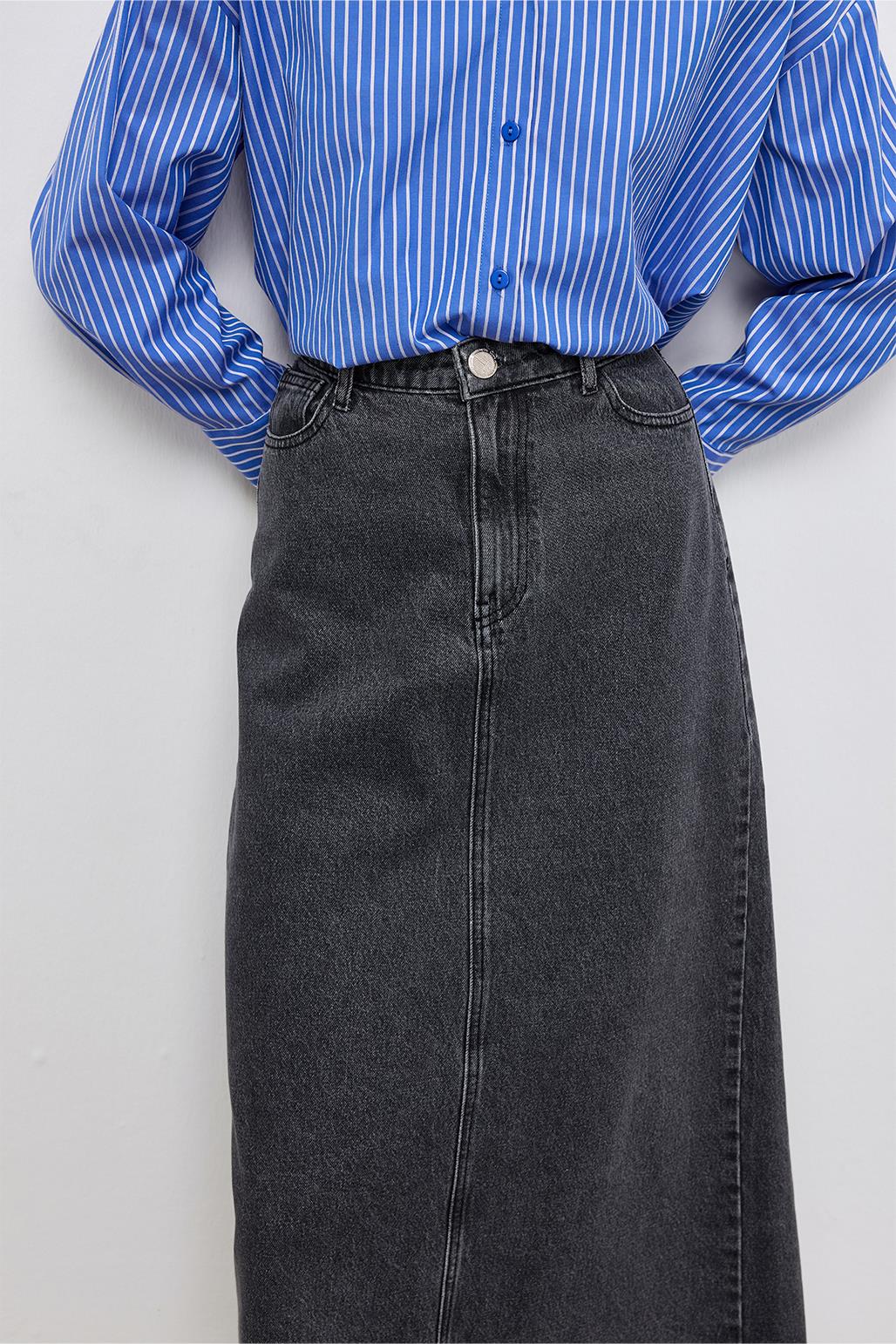 DENIM PENCIL SKIRT GRAY