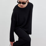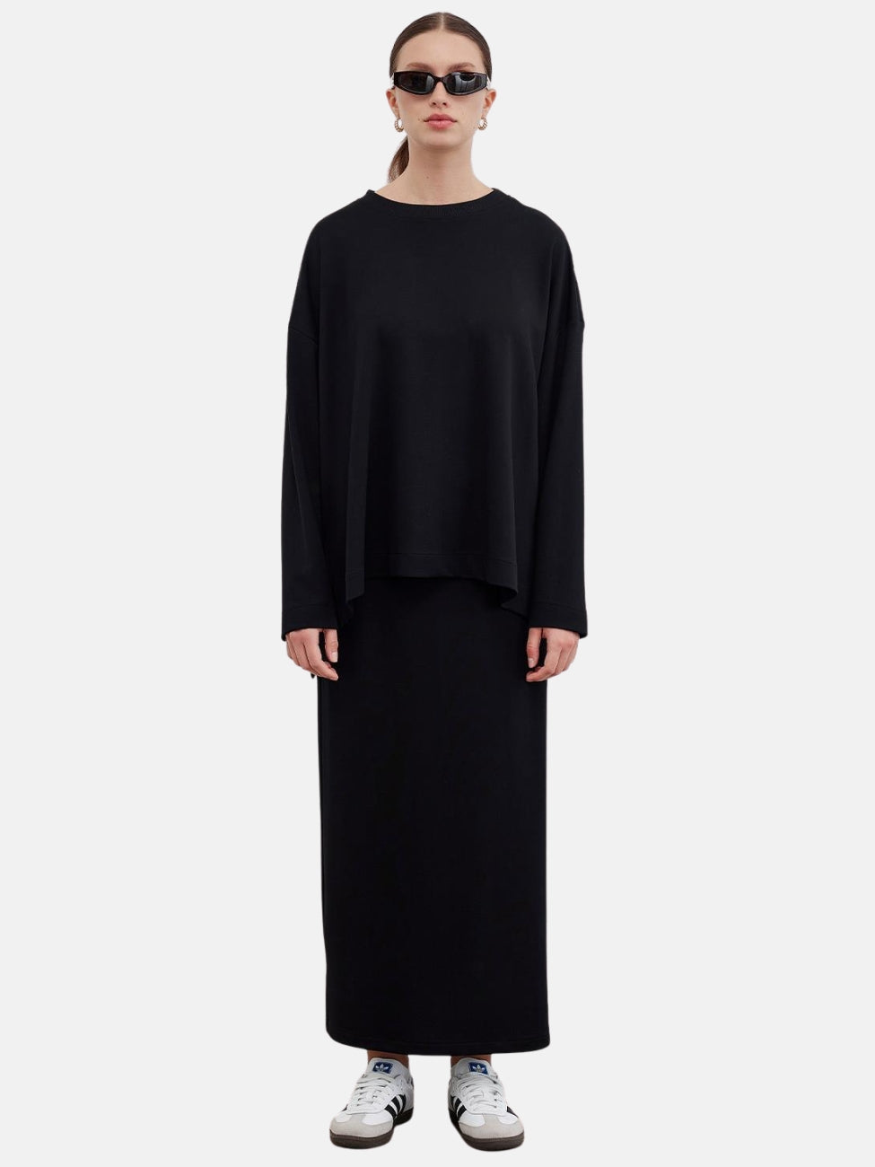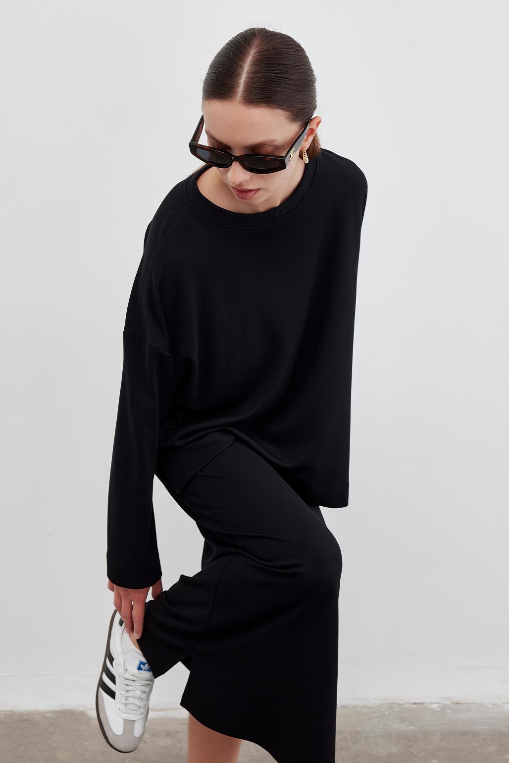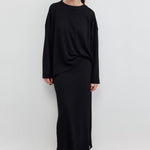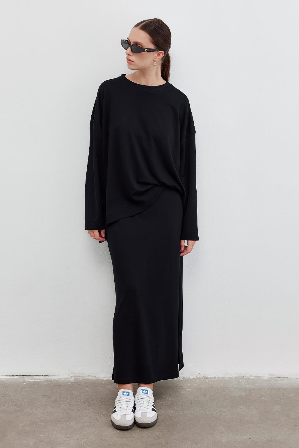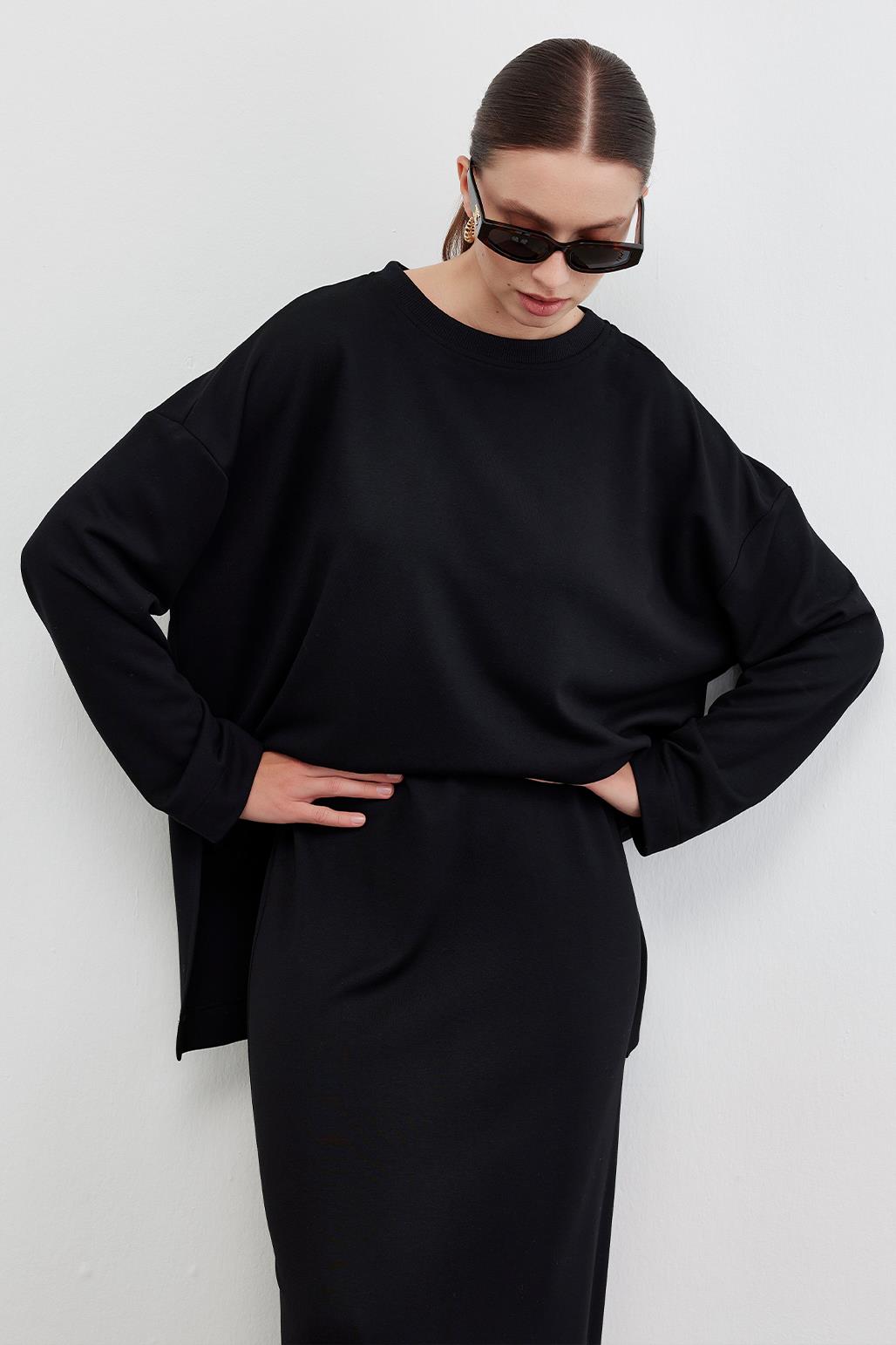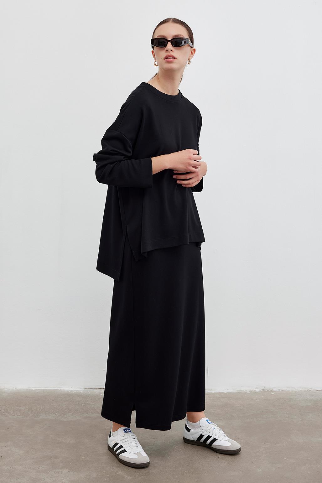 KNITTED TUNIC WITH SLIT AND PENCIL SKIRT SET BLACK